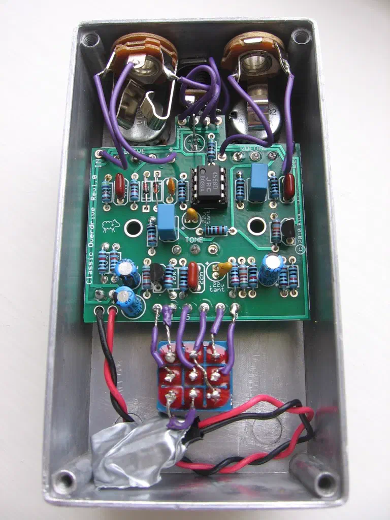 Which pedal to build for your first clone is an easy; a Tube Screamer overdrive. This is probably the most cloned pedal and is an easy first build. It is used by a huge number of guitarists and considered a classic pedal by almost everyone . It’s also a nice balance to the distortion pedal I already have, a very high-gain no subtlety monster. A tube screamer softly distorts the signal and keeps much of the original sound intact while and giving a mid-range boost. The originals were famous for the JRC4558D Op-Amp chip used, which wasn’t present in later models until Ibanez started selling re-issues.