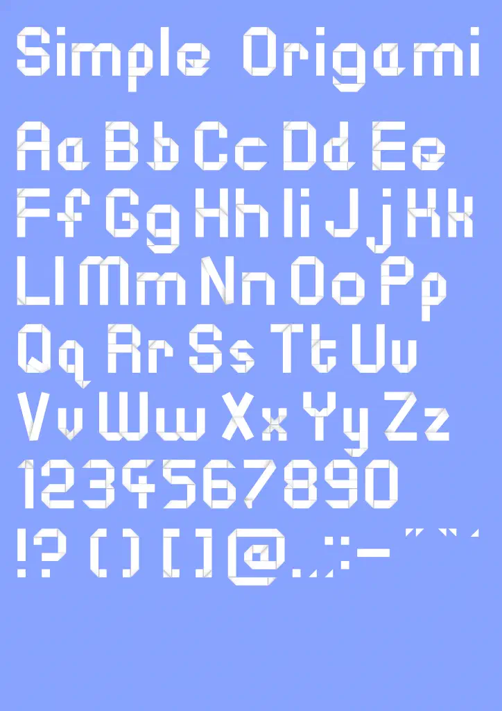 Generally I tried to stick to 90 and 45 degree folds, but the characters N, V, X, z (especially in uppercase) and 7 looked very stilted with those fold restrictions. The proportions on the lowercase x and uppercase Y seem to look fine to my eye, even though following the way the uppercase X is done I should probably have made the Y with none 45 degree folds.