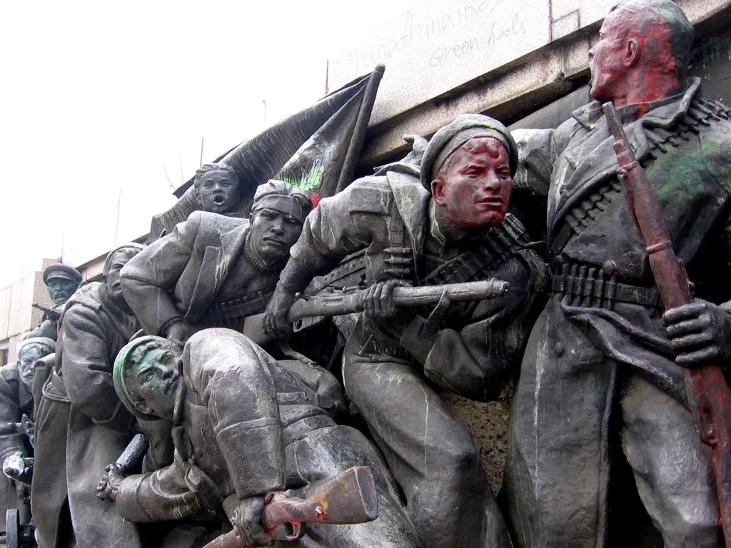 I start the day by wandering south to the National Palace of Culture and then head north and east to the park surrounding the Monument to the Soviet Army, one of a number of monuments built under soviet rule to express Bulgaria’s gratitude for their liberation. The park is filled with many little childish statues which have been sprayed in bright and slightly creepy colours. The monument itself is a large column on a raised square, atop stands a copper Russian soldier, flanked by a Bulgarian family, proudly waving his gun in the air and staring to the North.