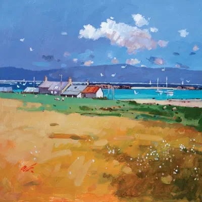 I recently received a card with the wonderful picture by Scottish painter James Orr on the front. He has a very enjoyable style, not too abstract or too detailed, just an eye for pleasant ways of abridging shapes while still representing the scene coherently.