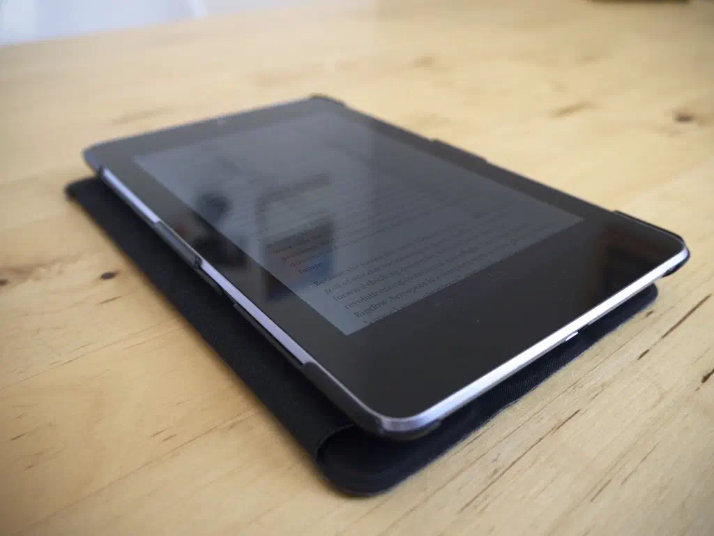The biggest problem with a 7” screen is that using the onscreen keyboard for anything but short notes is difficult, plus it takes up a lot of the screen space. Last year I was deliberating between a Chromebook and tablet, really because of the keyboard. The obvious solution was the to buy a bluetooth keyboard , which I can take with me when I want to write longer notes or e-mails. This is probably the best solution because I can then still use the tablet as an easy to hold and carry reading device without hauling the keyboard along with it.